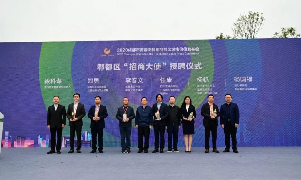 2020成都市菁蓉湖科創(chuàng)商務(wù)區(qū)城市價值發(fā)布會隆重舉行——丁點兒股份董事長任康獲授“招商大使”榮譽稱號