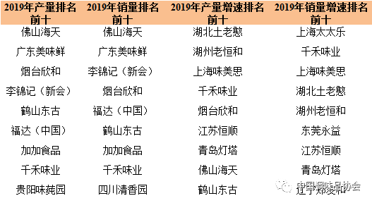 2019年中國(guó)調(diào)味品著名品牌企業(yè)100強(qiáng)中醬油企業(yè)產(chǎn)量和銷(xiāo)量排名前十企業(yè)