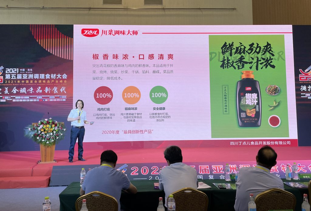? ? ? ?在“擁抱復(fù)合調(diào)味品新時(shí)代——2021年中國復(fù)合調(diào)味品產(chǎn)業(yè)峰會(huì)”上,丁點(diǎn)兒股份董事長任康獲得“2021中國復(fù)合調(diào)味品產(chǎn)業(yè)創(chuàng)變?nèi)宋铩睒s譽(yù)稱號(hào),丁點(diǎn)兒老壇酸菜醬調(diào)味料榮登2021中國調(diào)味品爆品榜單。