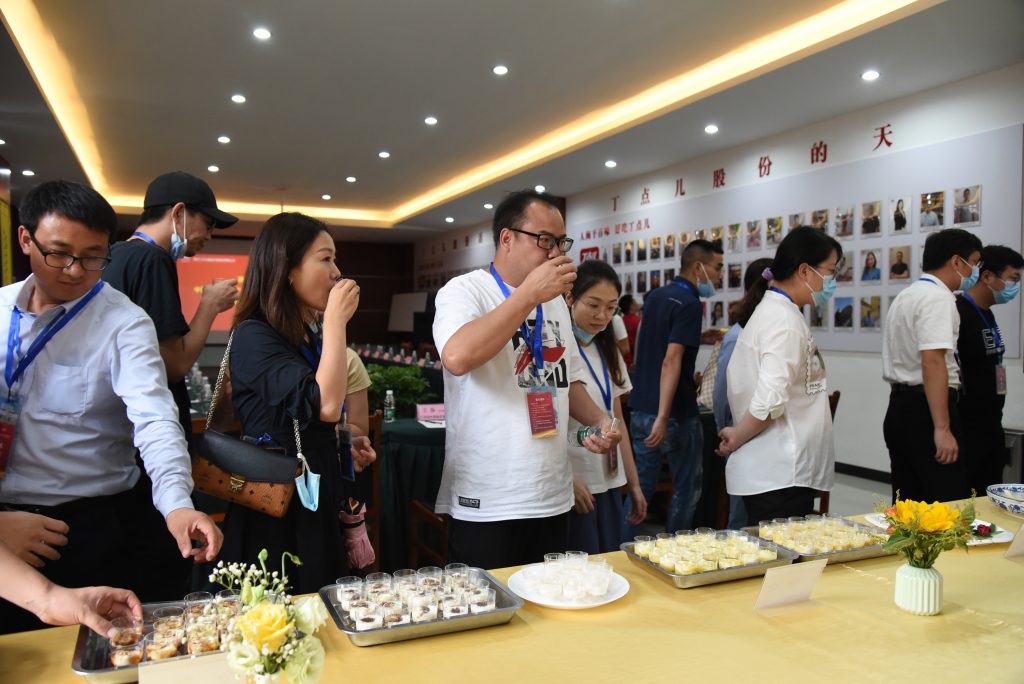 △考察團(tuán)嘉賓一行品鑒、交流丁點(diǎn)兒產(chǎn)品及菜品