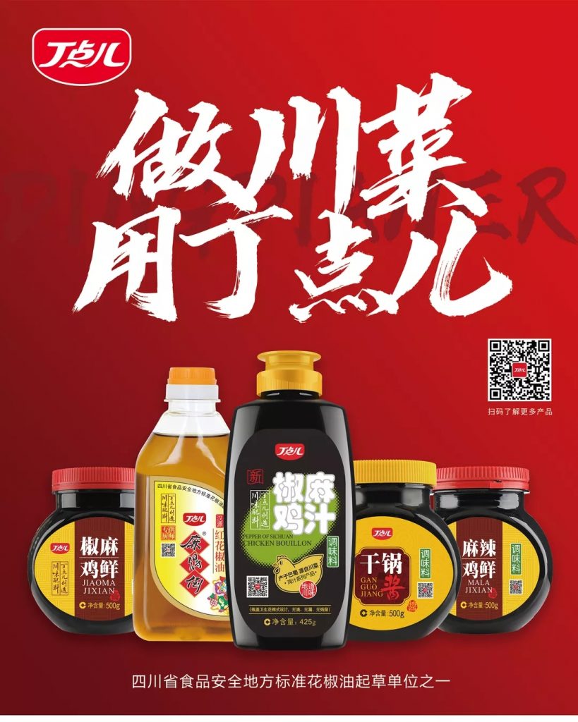 ? ? ? ?以“味料同源,簡約烹飪,安全健康”為產(chǎn)品理念,丁點(diǎn)兒股份不斷提升生風(fēng)味,創(chuàng)造特色,打造了以川味復(fù)合調(diào)味料、川味特色花椒油為主導(dǎo)的產(chǎn)品體系,自主研發(fā)并推出了丁點(diǎn)兒品牌干鍋醬、麻辣雞鮮、酸辣粉醬、椒麻雞汁、青花椒汁、藿香汁等近千種川味復(fù)合調(diào)味料,諸多產(chǎn)品屬于行業(yè)首創(chuàng)。