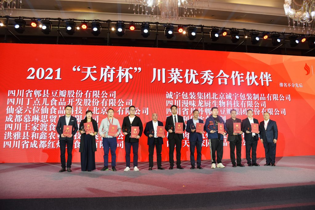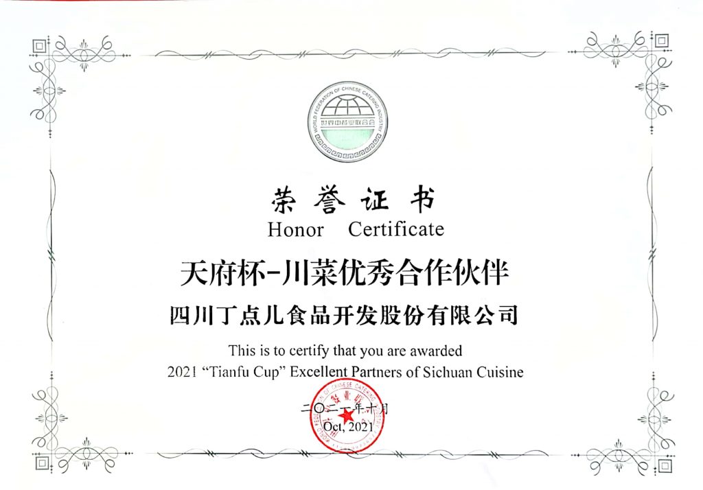 ? ? ? ?10月18-20日,由成都市郫都區(qū)人民政府、世界中餐業(yè)聯(lián)合會(huì)共同主辦的第四屆世界川菜大會(huì)在成都市郫都區(qū)隆重召開,丁點(diǎn)兒股份攜企業(yè)明星產(chǎn)品在會(huì)場亮相,并在2021“天府杯”世界川菜頒獎(jiǎng)大會(huì)中獲得“‘天府杯’川菜優(yōu)秀合作伙伴”稱號(hào)。