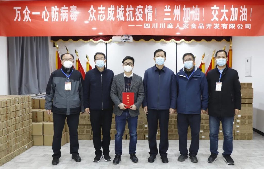 ? ? ? ?前不久,川麻人家食品向蘭州交通大學捐贈了“爽麻樂”品牌系列蘭州牛肉面調味料、拌飯醬系列等價值近二十萬元的防疫物資。