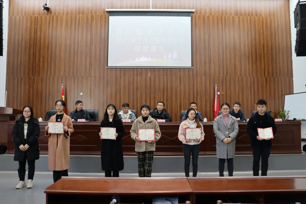 ? ? ? ? 12月21日,2021年“丁點兒股份獎學(xué)金”頒獎儀式在四川輕化工大學(xué)宜賓校區(qū)舉行,學(xué)校生物工程學(xué)院院長趙志峰、黨委副書記馬懿、副院長馮志平及丁點兒股份技術(shù)中心常務(wù)副主任羅強祖、人資行政部副部長曹宇等出席了活動。
