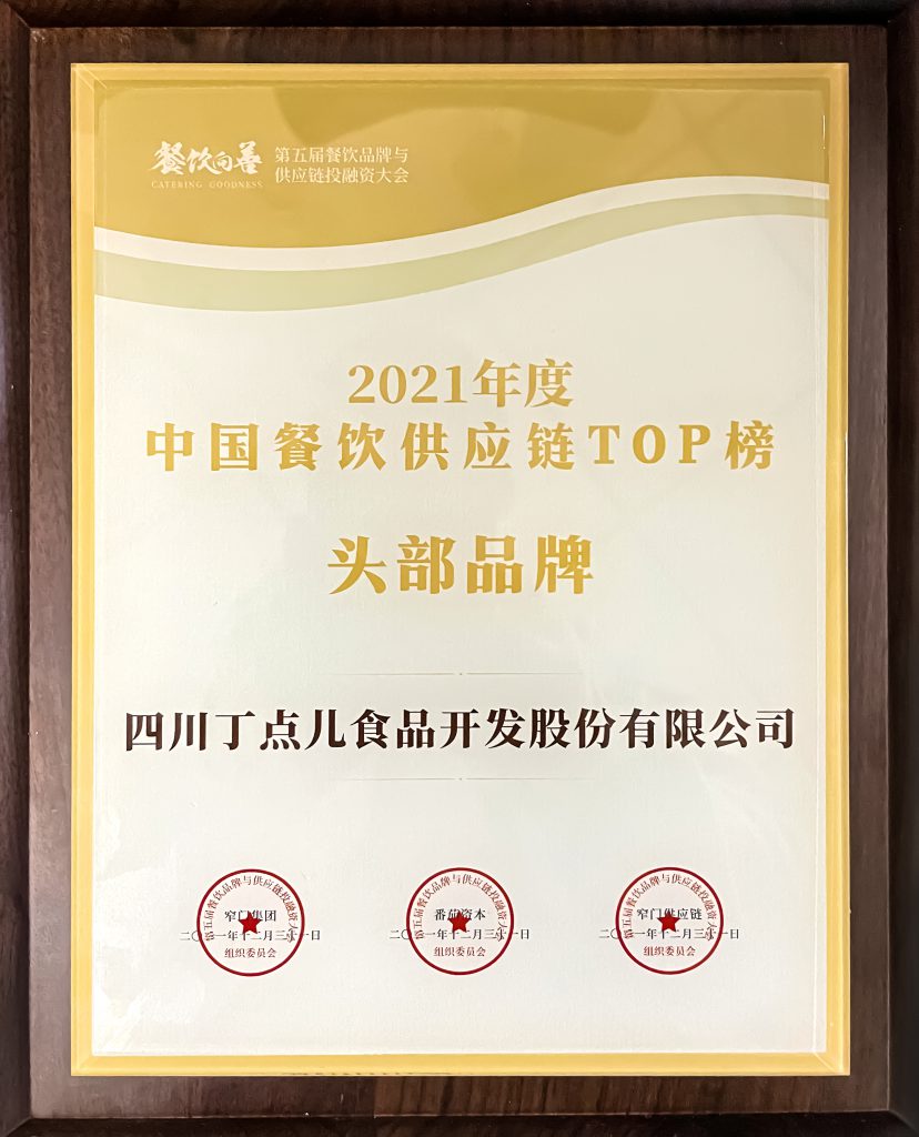 丁點(diǎn)兒股份榮獲“中國(guó)餐飲供應(yīng)鏈TOP榜頭部品牌”稱(chēng)號(hào)