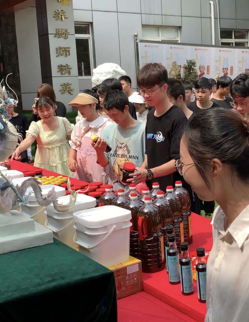 ? ? ? ?展示臺,丁點兒產(chǎn)品與菜品吸引了一批又一批師生駐足了解,給大家留下深刻印象。