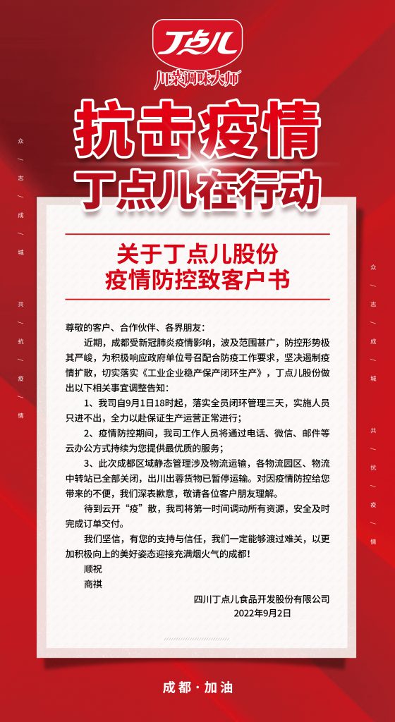 疫情當(dāng)前,見(jiàn)字如面,丁點(diǎn)兒股份疫情防控致客戶書(shū)!