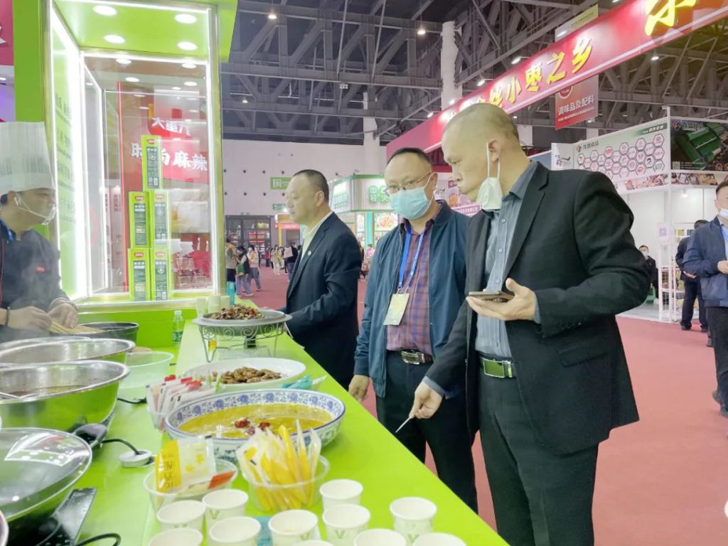 調(diào)味品展區(qū)可謂是爭奇斗艷,川味復(fù)合調(diào)味料品類展示尤為突出搶眼,椒麻、麻辣、酸辣等20多種復(fù)合味型調(diào)味料一應(yīng)俱全。