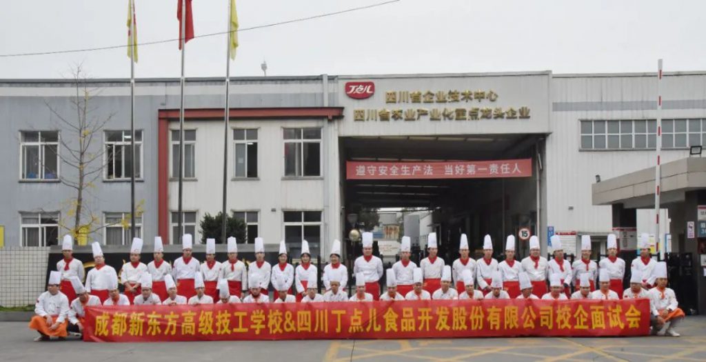 為加強(qiáng)校企合作,深化產(chǎn)教融合,實現(xiàn)企業(yè)與學(xué)校的優(yōu)勢互補(bǔ)、人才共享。11月10日,成都新東方高級技工學(xué)??倧N班、大廚班師生一行50人蒞臨丁點兒股份安德生產(chǎn)廠區(qū)參觀交流。