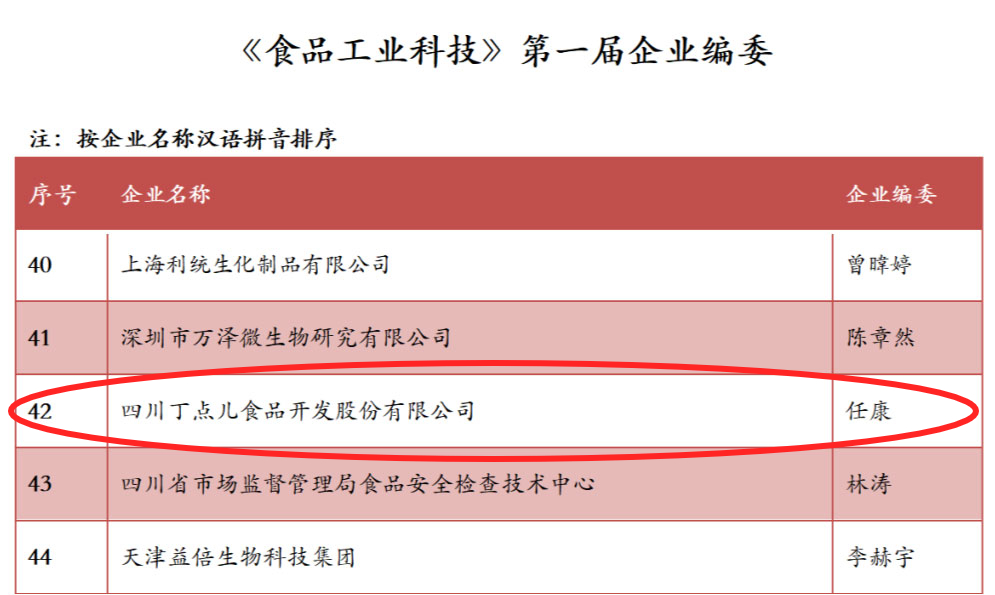 近日,中國權威學術期刊《食品工業(yè)科技》第一屆企業(yè)編委專家名單公布,四川丁點兒食品開發(fā)股份有限公司董事長任康成功當選。