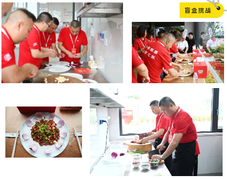 現(xiàn)場,大廚們還以分組抽盲盒食材的形式,現(xiàn)場進行菜品制作挑戰(zhàn)。大廚們摩拳擦掌、分工有序,用丁點兒干鍋醬、藤椒油、金湯酸菜醬、椒麻雞汁等產品快速出品了一道道色香味俱全的美味佳肴。