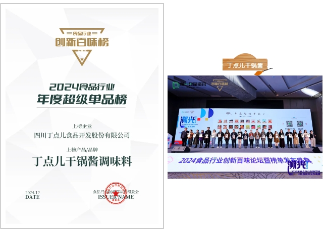 喜報(bào)!丁點(diǎn)兒干鍋醬獲“2024食品行業(yè)年度超級(jí)單品”獎(jiǎng)