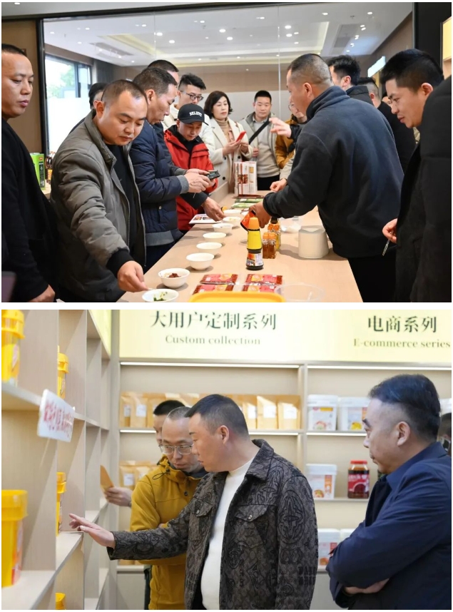 在應(yīng)用體驗(yàn)中心,丁點(diǎn)兒干鍋醬、椒麻雞汁、麻得倒純萃花椒油等豐富的產(chǎn)品種類瞬間吸引了大家的目光。嘉賓們紛紛拿起自己感興趣的產(chǎn)品咨詢、品鑒,并對(duì)產(chǎn)品風(fēng)味給予了高度肯定,表達(dá)了合作發(fā)展的強(qiáng)烈意愿。