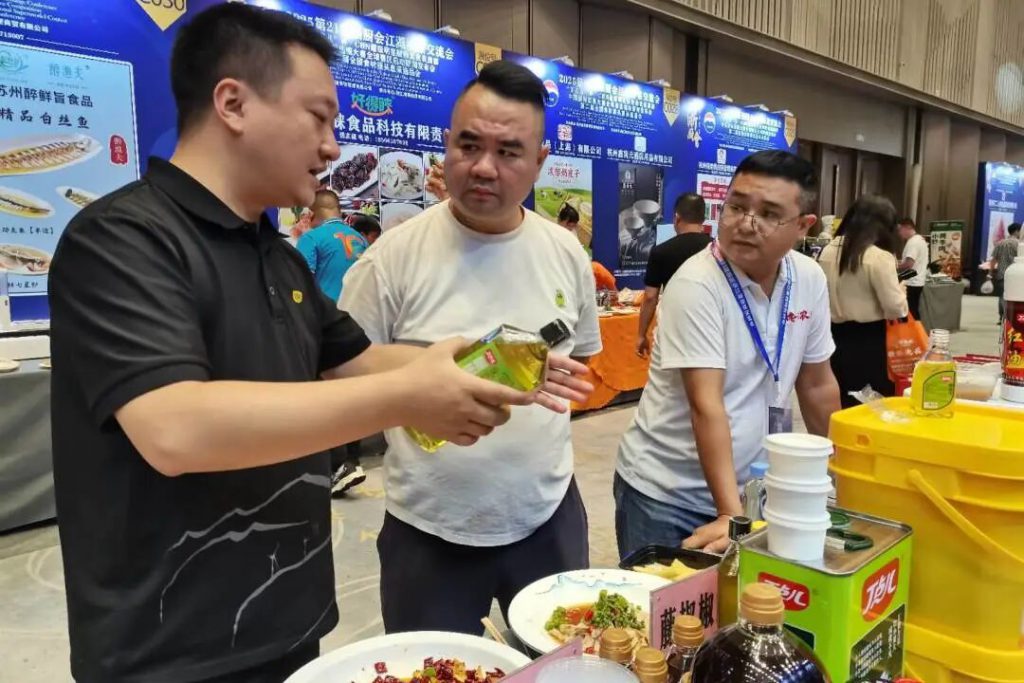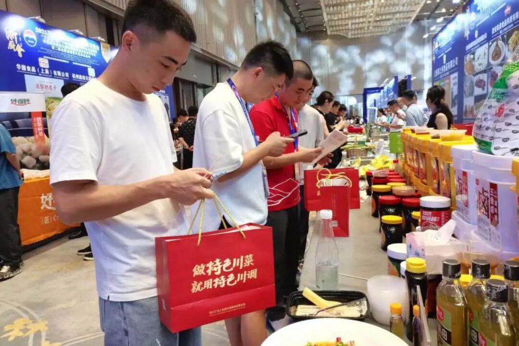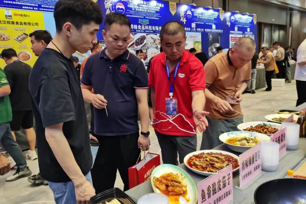 展臺前,人流如織,眾多餐飲連鎖企業負責人、廚師長及行業專家駐足咨詢、品鑒、交流。丁點兒菜品研發工程師用泡椒醬、椒麻雞汁、川味辣鹵等現場烹飪制作了魚香脆皮茄子、藤椒椒麻雞、川味辣鹵翅尖等特色菜品風味獨特、味型穩定,贏得了現場嘉賓的一致好評,許多客戶現場即達成了深入合作意向。