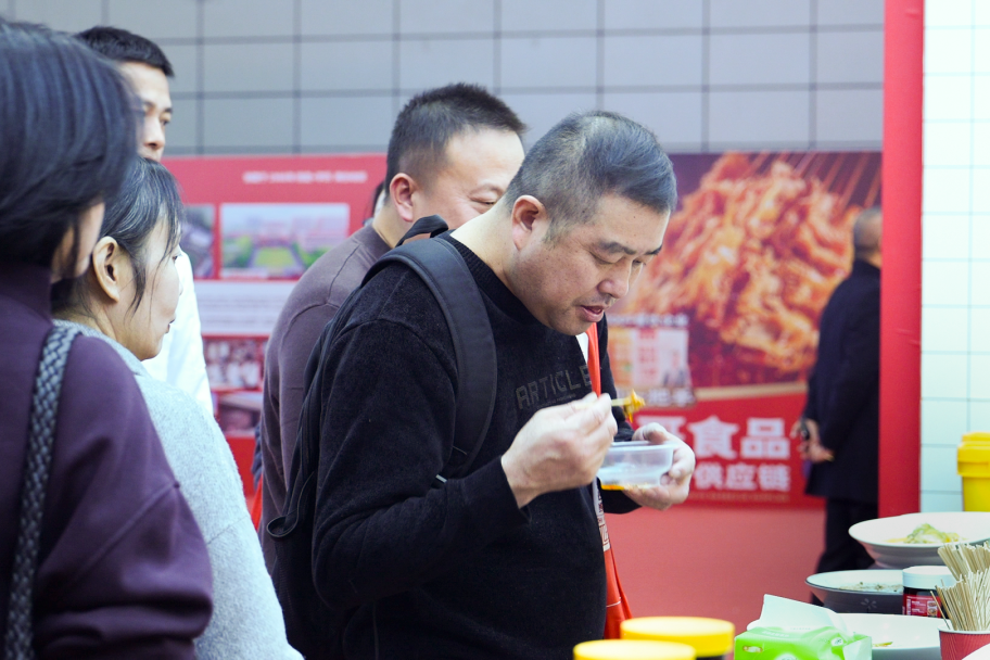 活動現場,丁點兒椒麻風味、干鍋風味、泡椒風味、金湯酸菜風味四大風味系列產品種類豐富、陳列亮眼,吸引了大批觀眾駐足咨詢。