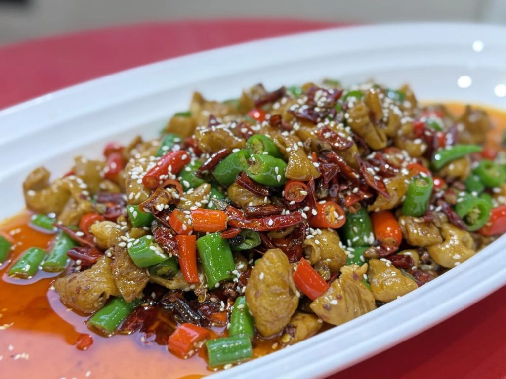 為讓觀眾更好感受丁點兒高品質特色川調產品的風味與優勢,菜品研發工程師以丁點兒老壇酸菜醬、干鍋醬、泡椒醬等現場演繹了金湯爽口烏魚片、丘北辣椒爆肥腸、砂鍋泡椒牛蛙等多道風味菜品。隨著鍋鏟翻飛,醬料與高溫碰撞的瞬間,濃郁香氣立刻在空氣中炸開,強勢挑逗著現場觀眾的味蕾。